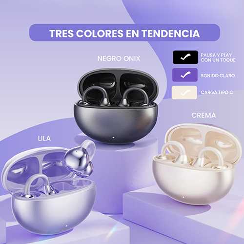 Elige entre tres colores en tendencia: Lila, Negro Onix y Crema. El accesorio que combina estilo, comodidad y tecnología.